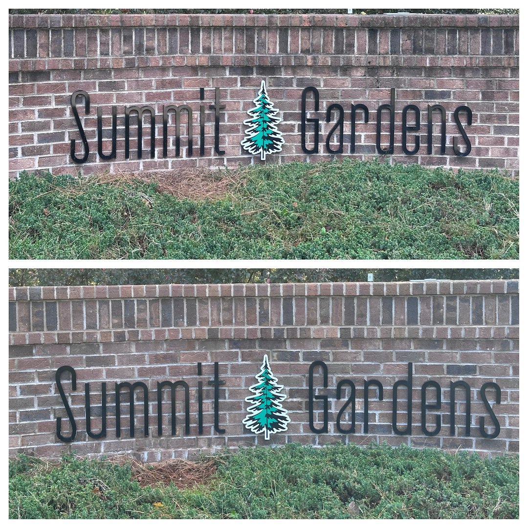 The transformation was remarkable! The Summit Gardens entrance sign now stands proudly once again, looking restored and welcoming. We're hoping the community was pleased to see their landmark revitalized, and it’s always rewarding to know that our work helps maintain the beauty and appeal of the spaces we serve.