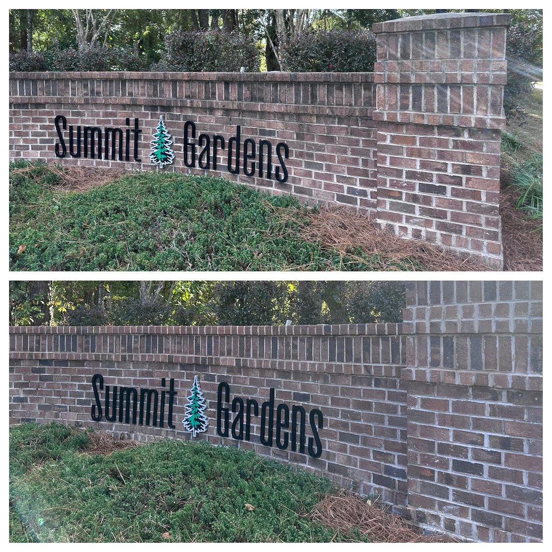 Southern Suds Pressure Washing recently had the pleasure of revitalizing the entrance sign for the Summit Gardens community in Summerville, South Carolina. This all-brick sign, which serves as a welcoming landmark for residents and visitors, had accumulated a noticeable layer of algae and mildew over time, diminishing its bright, inviting appearance.